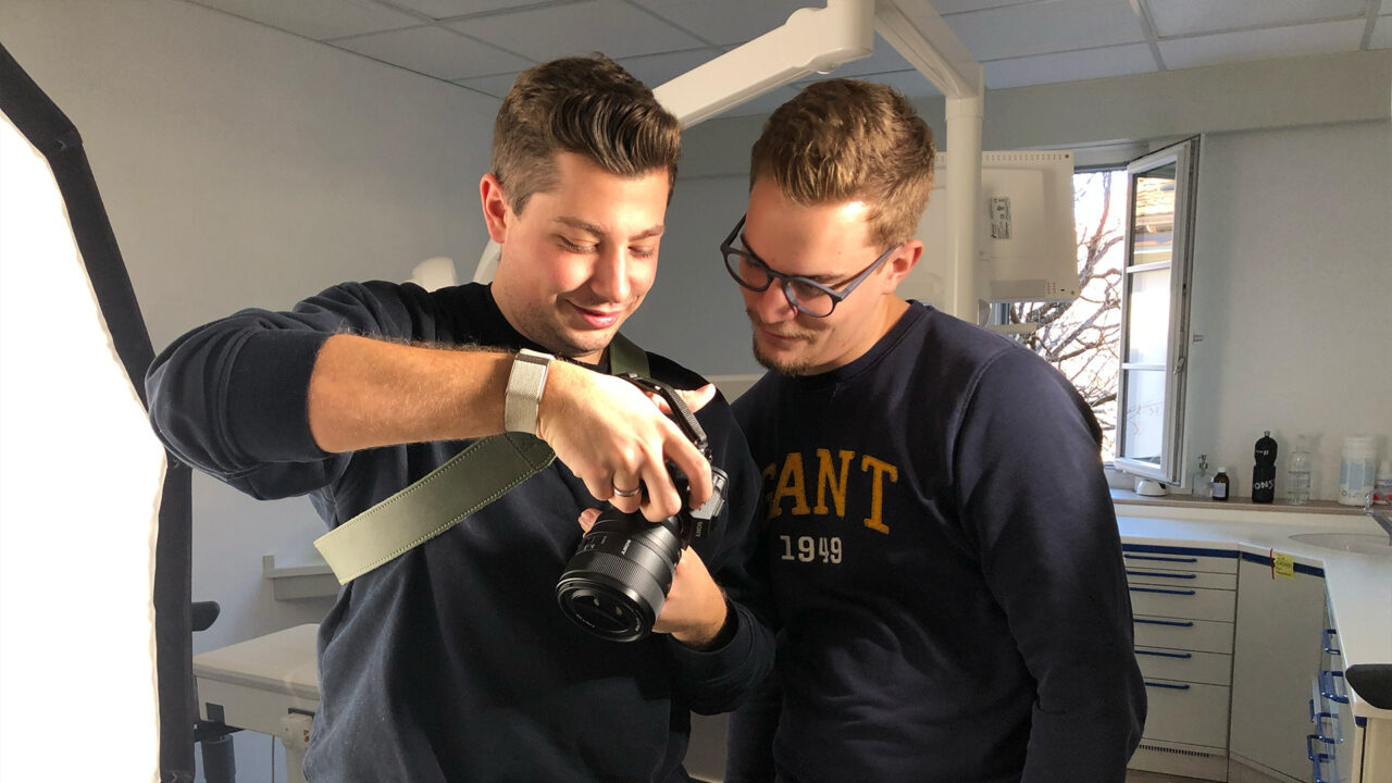 Um an authentische Aufnahmen für die Website zu gelangen, organisierten wir einen Foto- und Filmtermin in der Zahnarztpraxis. Joel übernahm die Portraits des Praxisteams und stellte das notwendige Equipment zur Verfügung. Er schoss die Fotos mit seiner Sony a7iv und zeigte dabei das Team im besten Licht. Alle weiteren Praxisfotos, wie Räumlichkeiten, Instrumente und gestellte Szenen hat Celina übernommen. Dabei benutzte sie die Panasonic Lumix GH5 und Nikon D800. Das Video nahm Siro in Angriff, er filmte mit seiner Panasonic Lumix S1H.