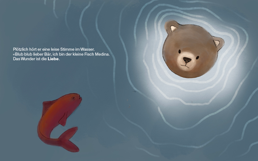 Das Kinderbuch, welches ich konzipiert habe, ist einfach und verständlich für Kinder geschrieben. Und doch verbirgt es eine kleine Botschaft. Der kleine Bär auf grosser Reise. Für manche Eltern ist es nicht selbstverständlich, dass der eigene Kinderwunsch in Erfüllung geht. Es ist teilweise eine lange Reise. Eine Reise voller Verzweiflung, Belastung und Emotionen. Und darum geht es in «Der kleine Bär auf grosser Reise». Der Bär sucht das Wunder und kommt nach einer langen Reise bei Mama Bär und Papa Bär an. Das, was er immer gesucht hat, hat er jetzt gefunden – er selbst ist nämlich das grosse Wunder.