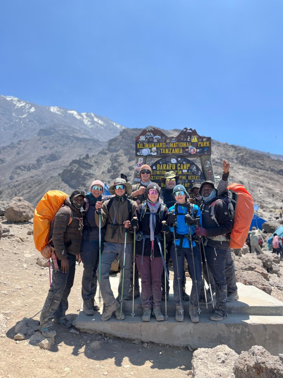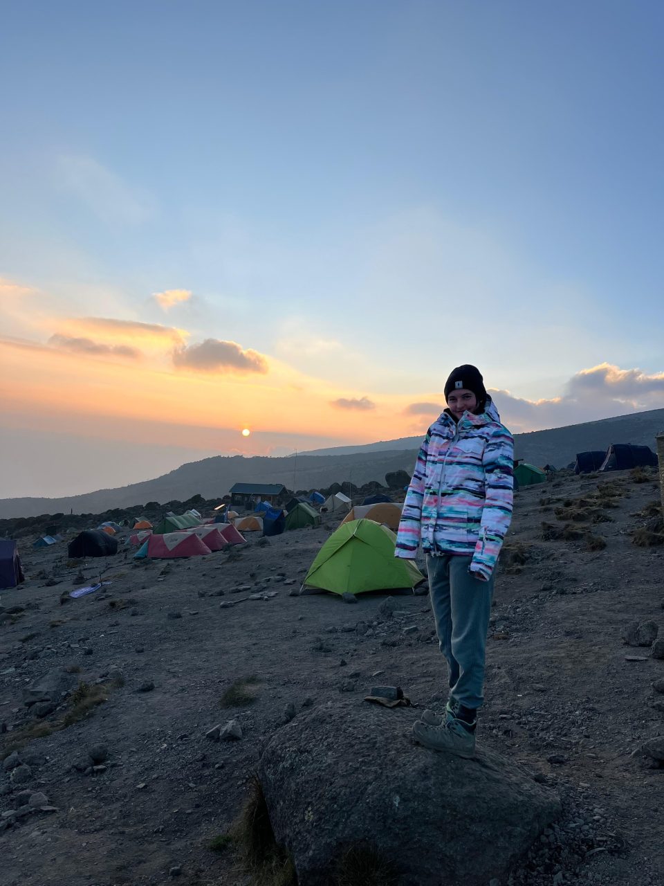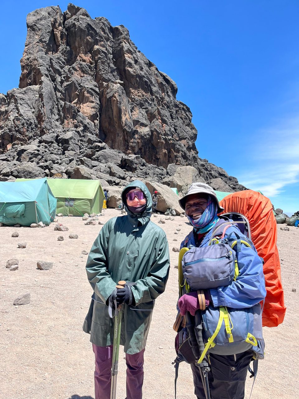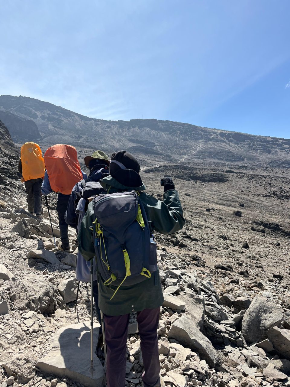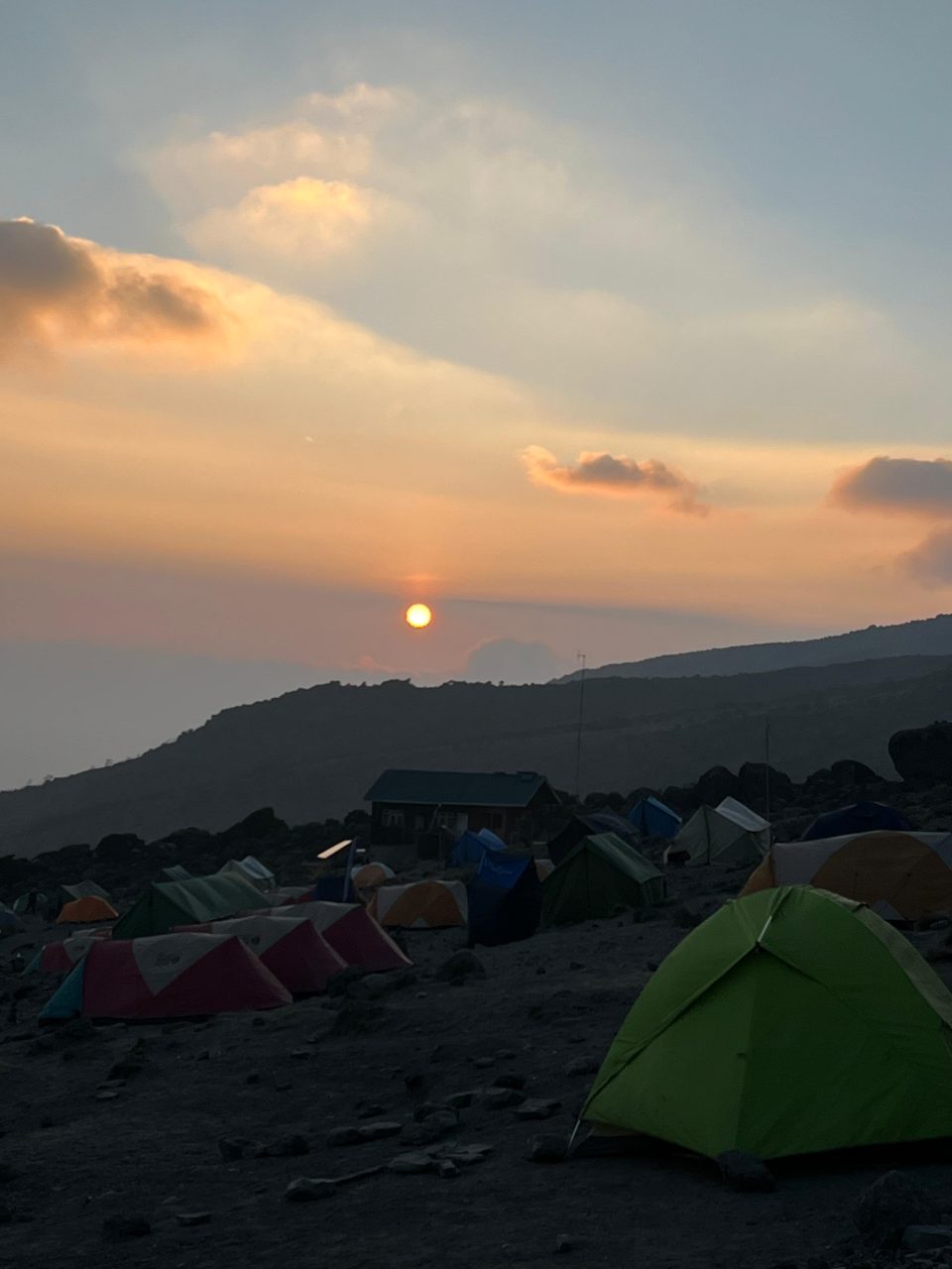 Am fünften Tag ging es weiter hinauf Richtung Gipfelbasislager. Die Wanderung zum Barafu Camp war vergleichsweise kurz, aber anstrengend, da wir uns bereits auf grosser Höhe befanden. Der Weg führte über karges, steiniges Gelände, und die Vegetation wurde zunehmend spärlicher. Nach etwa vier Stunden erreichten wir das Barafu Camp auf 4673 Metern über Meer. Die Stimmung war ruhig und konzentriert, da allen bewusst war, dass in der kommenden Nacht der Gipfelaufstieg bevorstand. Nach einer frühen Mahlzeit legten wir uns hin, um zumindest etwas Schlaf zu bekommen, bevor es kurz vor Mitternacht wieder losgehen sollte.