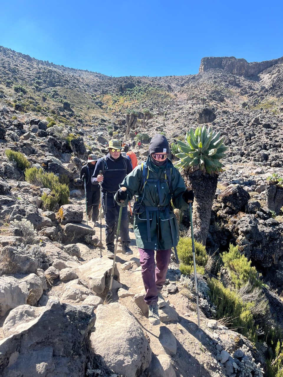 Am dritten Tag standen vor allem Akklimatisierung und Höhenmeter im Vordergrund. Wir wanderten zuerst hinauf zum Lava Tower Camp auf rund 4600 Meter und assen dort zu Mittag. Die Höhe machte sich deutlich bemerkbar, weshalb das Tempo sehr langsam blieb. Anschliessend stiegen wir wieder rund 700 Meter hinunter zum Barranco Camp, das für viele das schönste Camp auf dem Kilimandscharo ist.