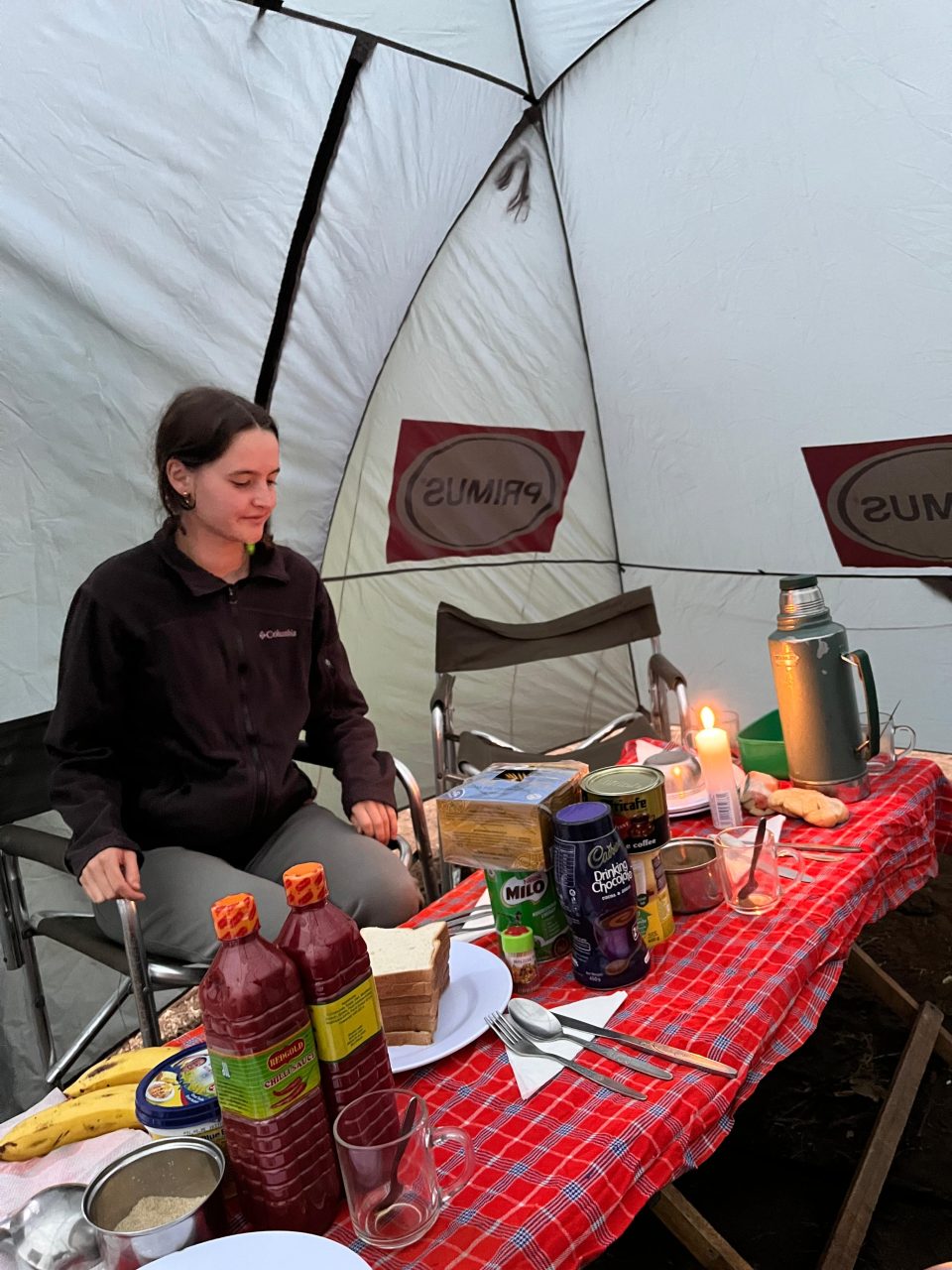 Am ersten Tag wurden wir von unserem Hotel zum Lemosho Gate gebracht, wo unsere Reise begann. Die erste Wanderung dauerte nur etwa zweieinhalb Stunden und führte gemächlich durch den Regenwald zum ersten Camp, dem Mti Mkubwa Camp. Dort waren unsere Zelte bereits aufgebaut, und wir konnten im Aufenthaltszelt bei Snacks und Tee etwas ausruhen für den nächsten, anstrengenden Tag. Die leichte Strecke war ein angenehmer Einstieg, und man hatte Zeit, sich an die Höhe und den Alltag im Gebirge zu gewöhnen.
