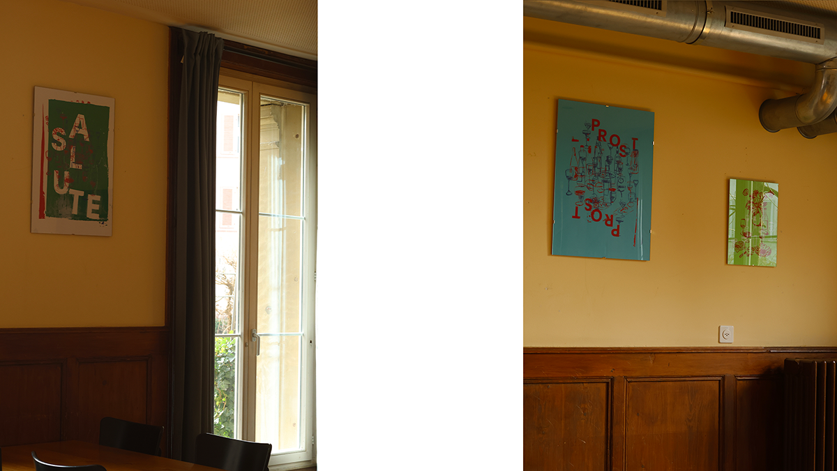 An zwei Vormittagen im Siebdruckatelier entstanden so neue Drucke, die die bestehende Serie ergänzen und erweitern. Anschliessend plante ich die Ausstellung, schnitt die Drucke zu und hängte sie vor Ort auf. Die Plakatserie mit insgesamt 20 Plakaten sind nun bis Mai 2026 im Restaurant Lokal in Bern zu sehen.