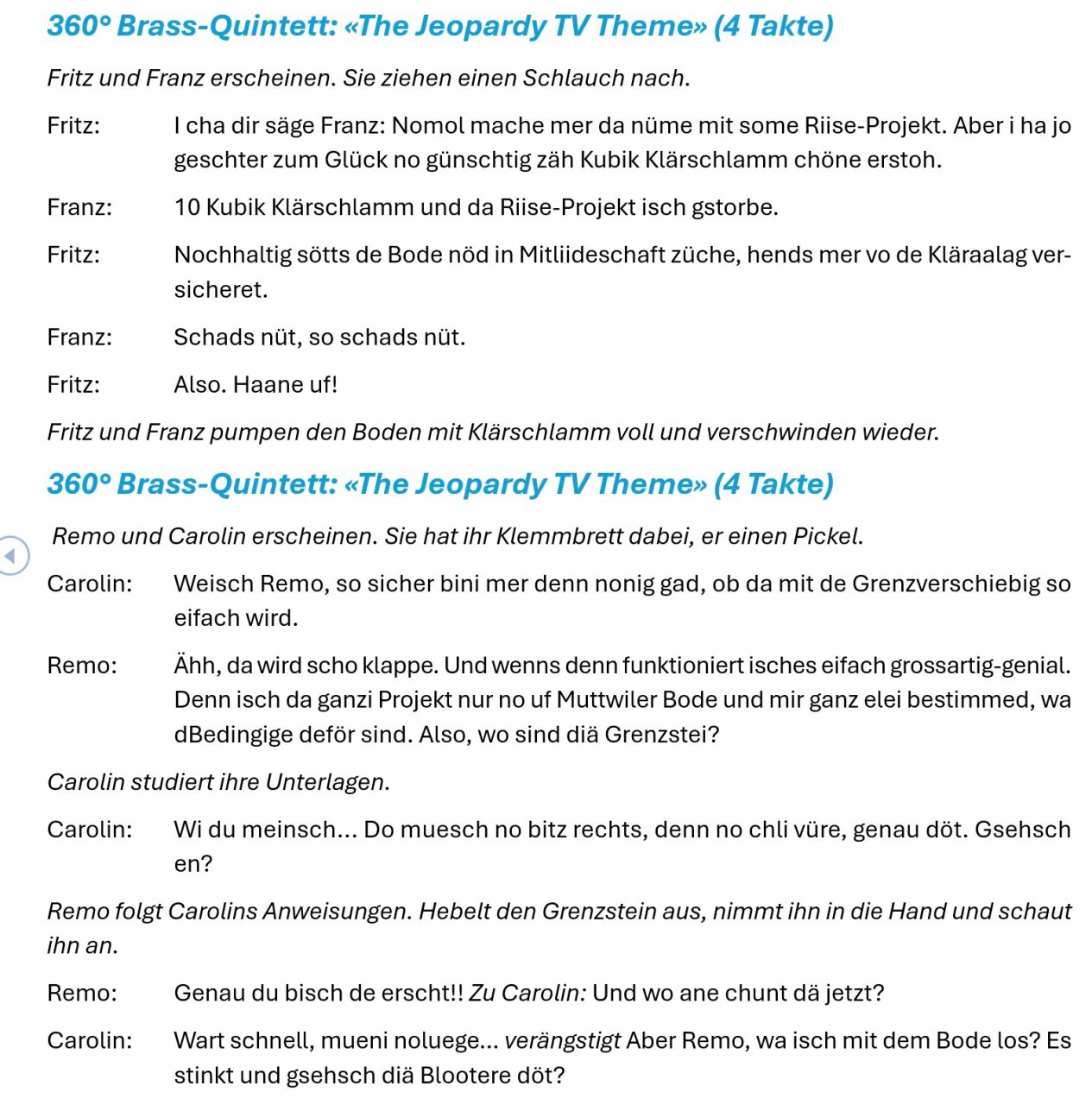 Im Frühling 2025 fand die Kickoff-Sitzung für das 360°-Brass-Projekt «Im Dreiklang» statt. Das dreiköpfige OK sass zusammen, bestimmte die Eckpfeiler, verteilte Rollen und Aufgaben für das umfangreiche Vorhaben. Für alles, was Geschichte und Inszenierung betraf, trug ich die Hauptverantwortung.