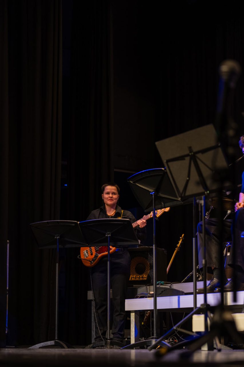 Ich hatte nur ein 24–70-mm-Objektiv dabei. Dieses ist zwar vielseitig, jedoch für Konzertfotografie nicht immer optimal. Ein Objektiv mit grösserem Zoom wäre in diesem Fall besser gewesen, da ich die Musiker:innen nicht so nah und scharf fotografieren konnte, wie ich es mir gewünscht hätte. Besonders bei Einzelporträts oder emotionalen Momenten war die Distanz ein Problem. Dadurch habe ich gemerkt, wie stark die Bildwirkung von der Objektivwahl abhängt und dass ich mich in Zukunft noch besser auf den jeweiligen Einsatz vorbereiten möchte.