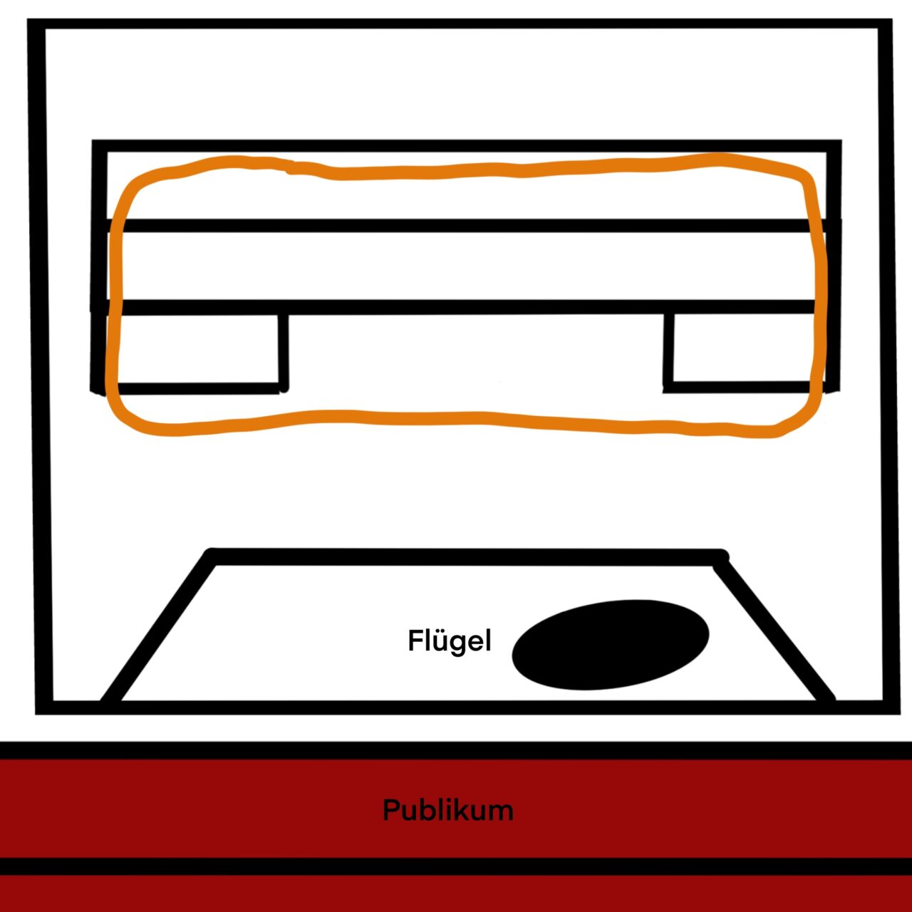 Anhand von Handyfotos (iPhone 8) aus der Intensivprobewoche und meinen Notizen und Erinnerungen zeichnete ich jeden Abend nach der Probe, neue Versionen der Aufstellungspläne, verfasste das Protokoll neu und sendete es an die beteiligten Sängerinnen und Sänger. Die hier publizierte Version ist die finale Version, so wie das Konzert schliesslich aufgeführt wurde. Für die Zeichnungen verwendete ich Procreate auf meinem iPad Pro, für das Protokoll verwendete ich Word.