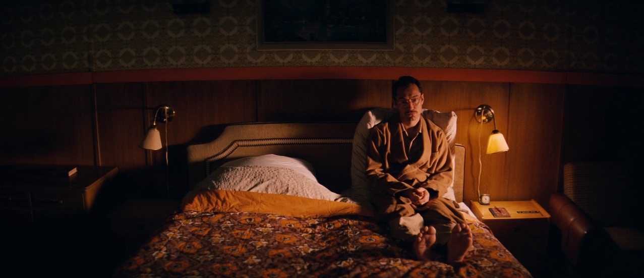 Symmetrische Kompositionen und knallige Farben – das sind die typischen Merkmale eines Wes-Anderson-Films. Entsprechend überrascht es nicht, dass auch die Szenen im Schlafzimmer von Grand Budapest Hotel wie ein Kammerspiel wirken. Die präzise Anordnung jedes Details verstärkt den charakteristischen, fast bühnenhaften Eindruck.