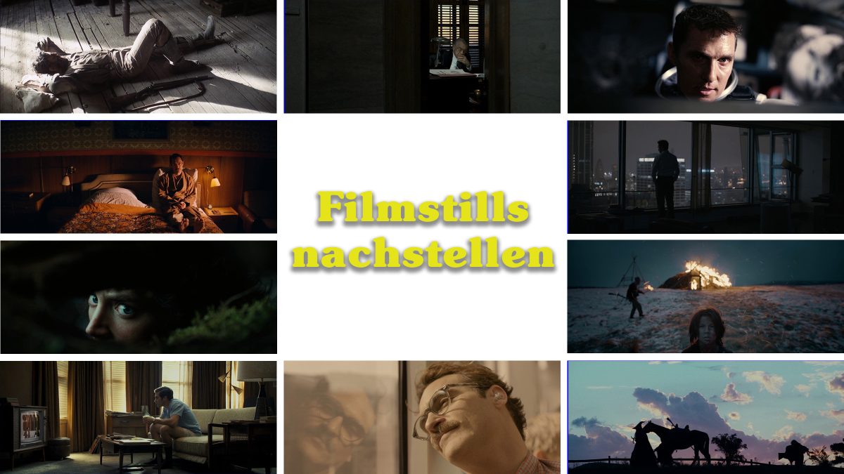 Als bildbegeisterter Mensch bin ich immer wieder fasziniert von dem visuellen Augenschmaus, der über die Leinwand flimmert. Ich möchte meine eigene Art, Szenen abzulichten, weiter verfeinern und neue technische Kniffe erlernen. Dafür kann man Schulen und Workshops besuchen – oder es einfach selbst in die Hand nehmen. Nach diesem Ansatz habe ich mir einige Filmstills – also Standbilder aus Filmen – ausgesucht und mir vorgenommen, diese nachzubauen oder es zumindest zu versuchen.