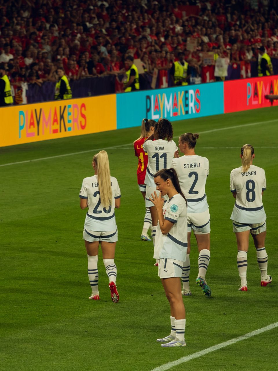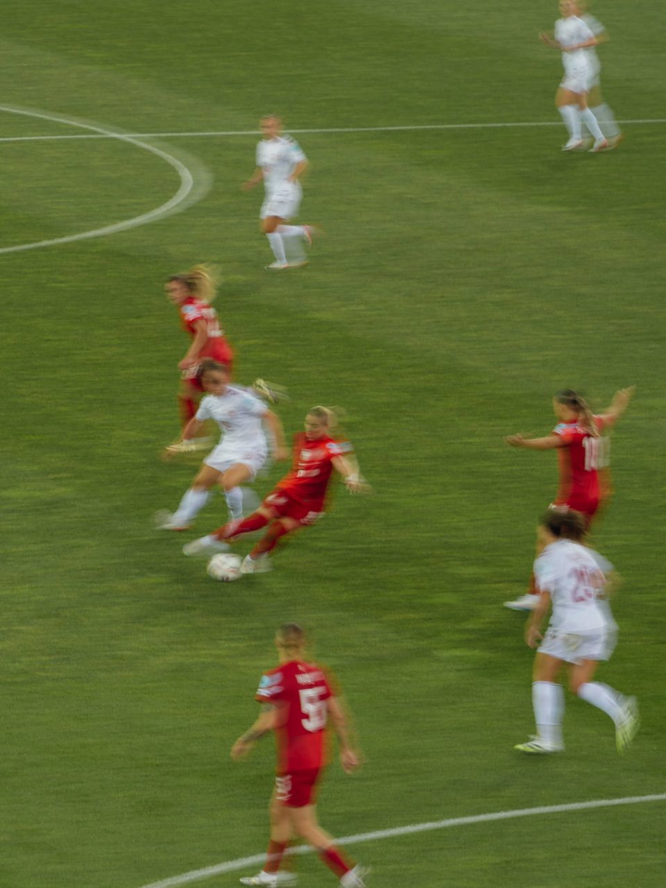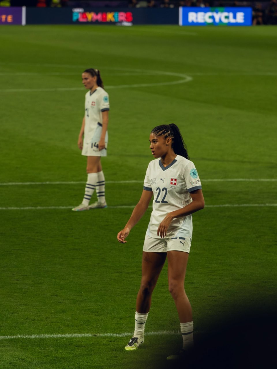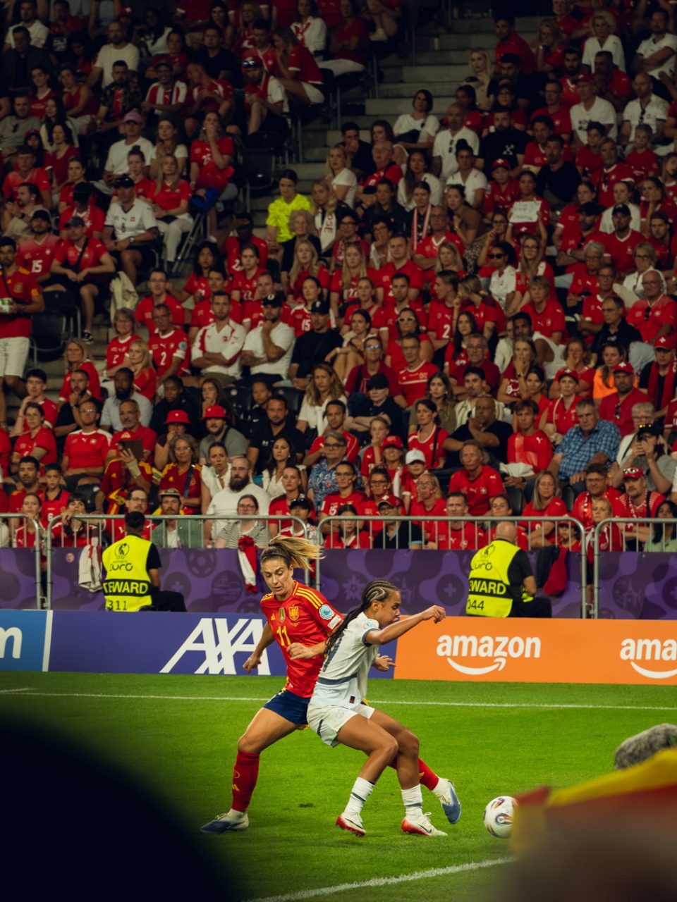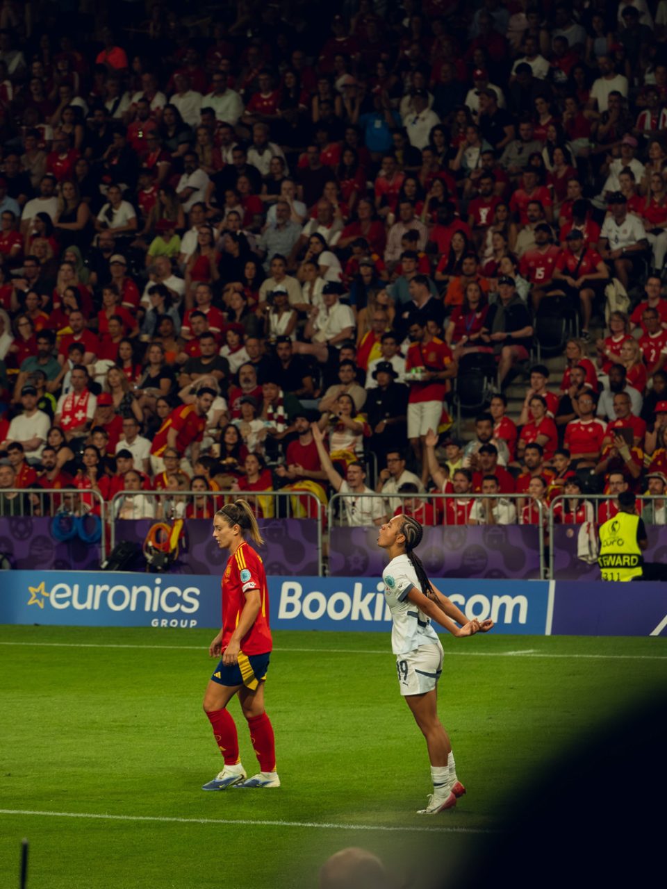 Ein Teil der Fotografien entstand während der UEFA Women’s EURO im Sommer. Als fussballbegeisterte Zuschauerin nahm ich meine Kamera mit ins Stadion und hielt verschiedene Spielsituationen fest. Die Europameisterschaft bot eindrückliche Einblicke in den internationalen Spitzenfussball der Frauen, geprägt von hoher Intensität, emotionalen Momenten und grosser medialer Aufmerksamkeit.