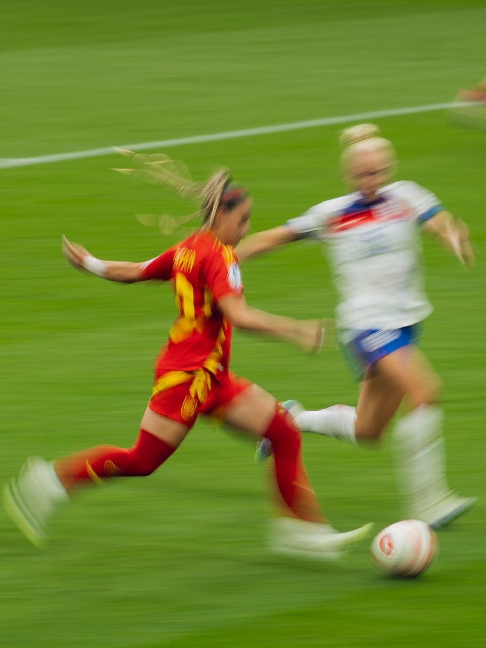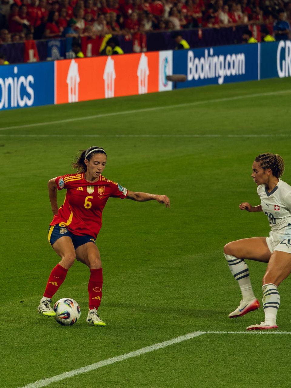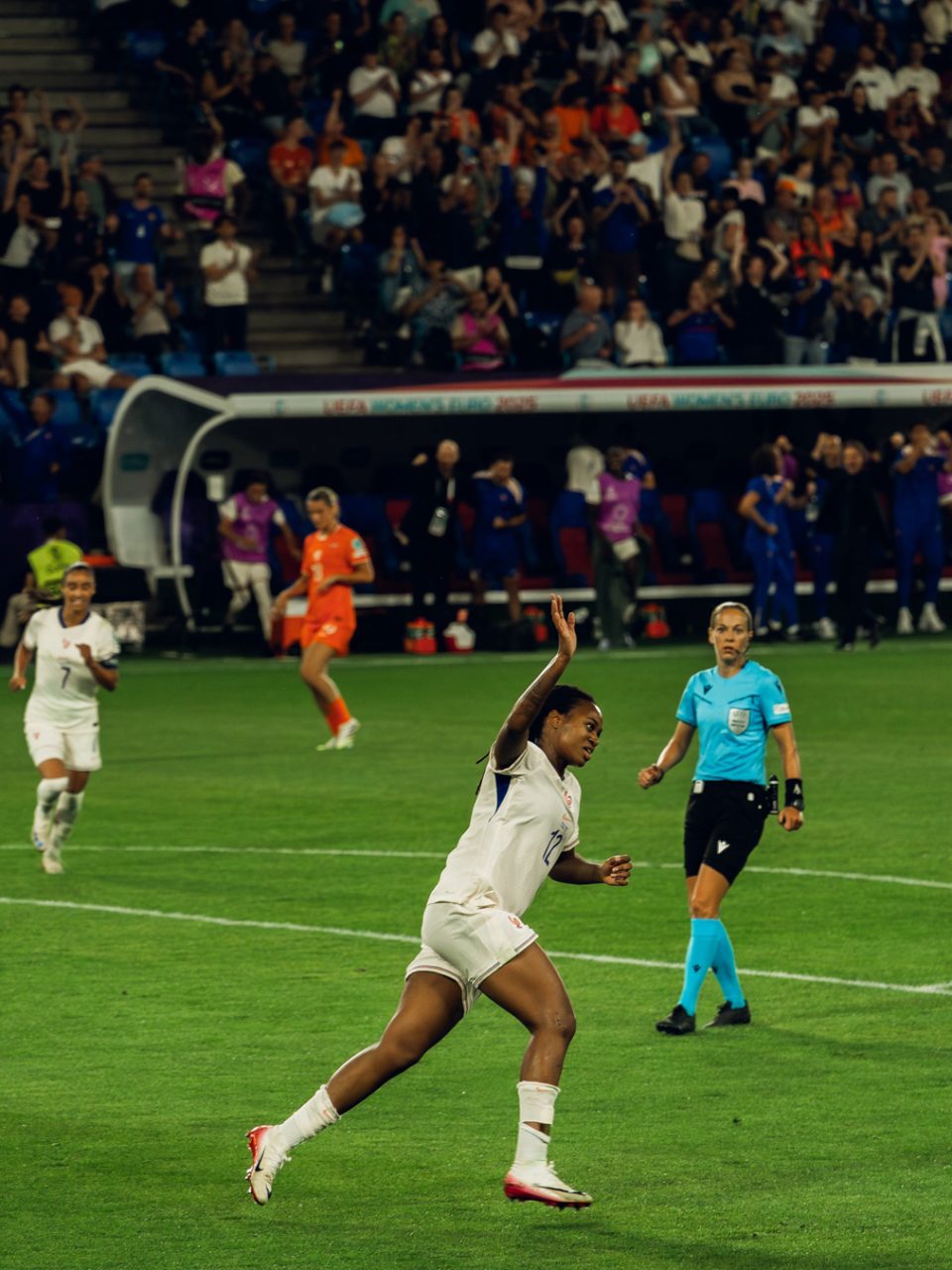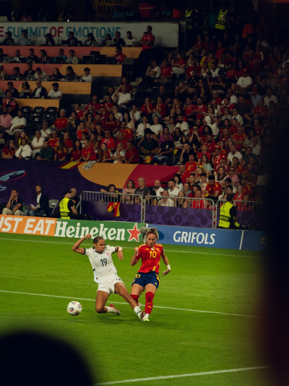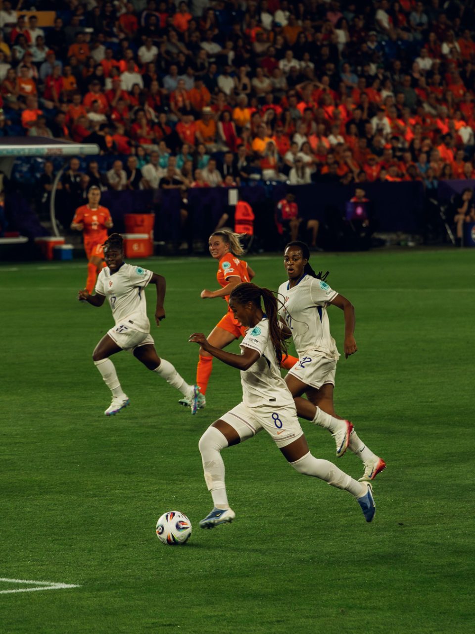 Ein Teil der Fotografien entstand während der UEFA Women’s EURO im Sommer. Als fussballbegeisterte Zuschauerin nahm ich meine Kamera mit ins Stadion und hielt verschiedene Spielsituationen fest. Die Europameisterschaft bot eindrückliche Einblicke in den internationalen Spitzenfussball der Frauen, geprägt von hoher Intensität, emotionalen Momenten und grosser medialer Aufmerksamkeit.