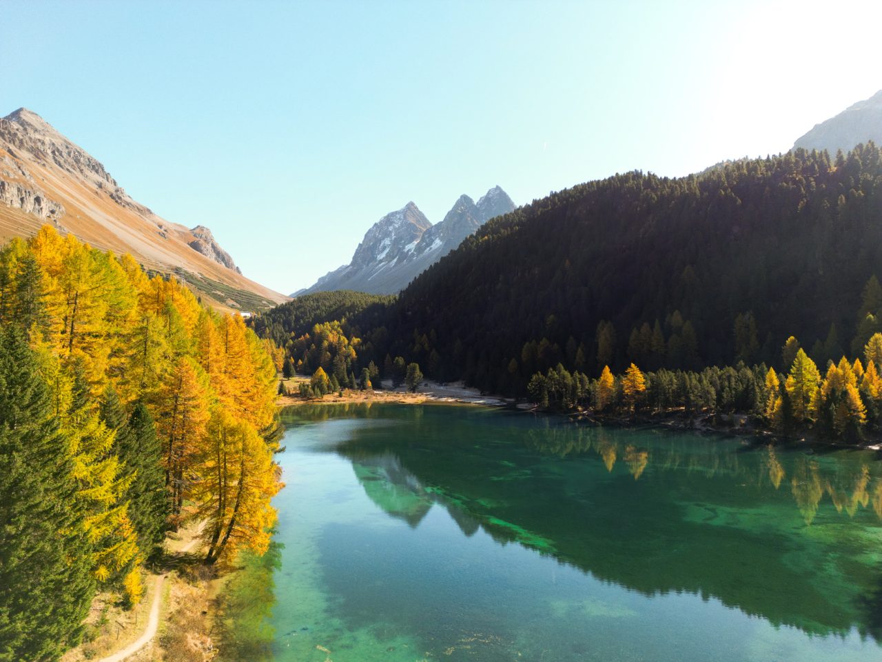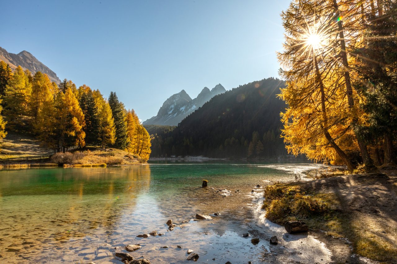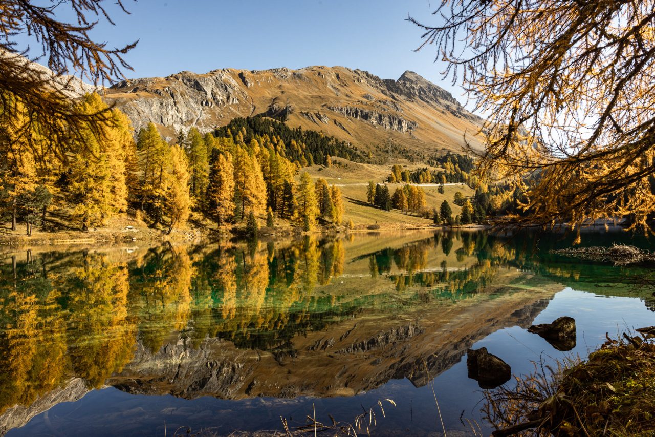 Anfangs Oktober wandelte sich die Lärchen-Landschaft rund um den Lai da Palpuogna auf dem Albula-Pass in eine wunderschöne Kulisse. Diese wollten wir mit unseren Kameras einfangen.