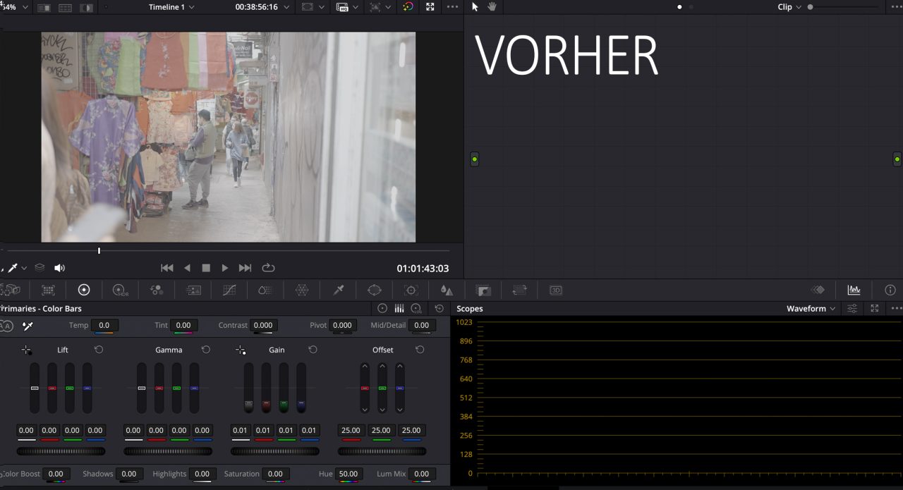Tagsüber ging es darum, die flachen Log-Aufnahmen wieder mit Leben zu füllen, ohne dass der Look künstlich wird. Hauttöne, Himmel, Beton, Pflanzen – alles musste zurückgeholt werden, ohne dass es „overgraded“ aussieht.