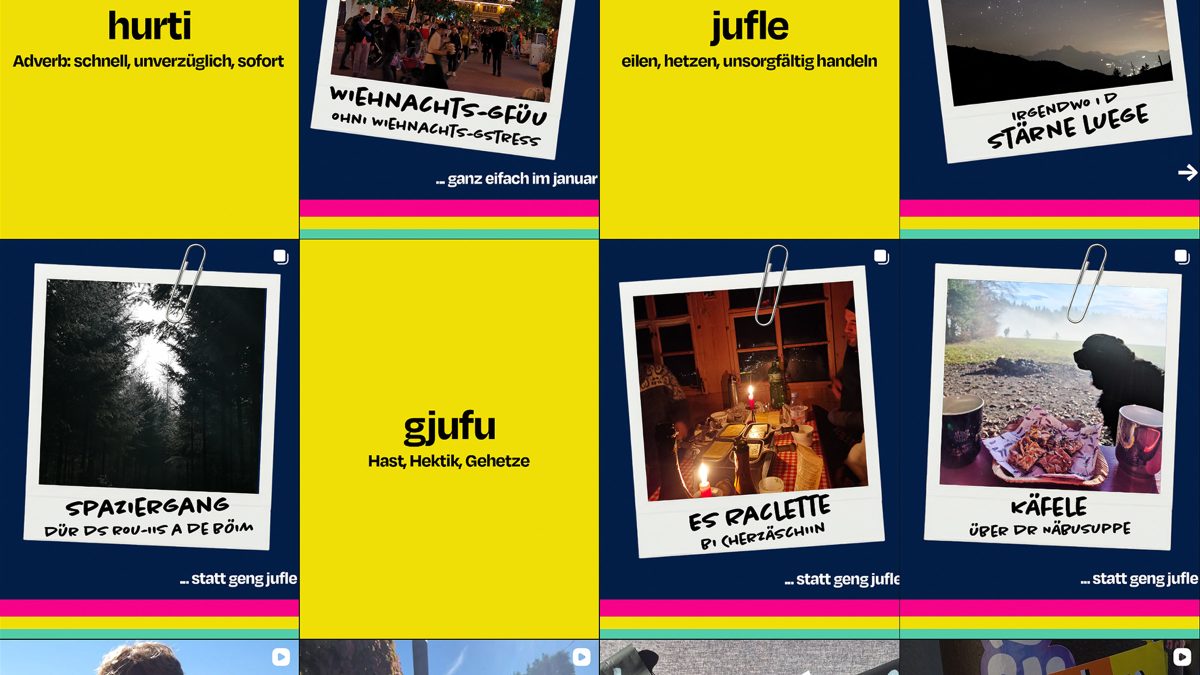 hurtihurti war von Anfang an kein simples «Pullover-Projekt». Bereits mit dem Launch am vergangenen 30. September wurde auf Instagram und TikTok deutlich, wofür die Marke steht. So wird in den zwei ersten Reels auf dem Account die Marke und das Produkt vorgestellt. Die zwei aktuellen Kampagnen liefern zum einen den nötigen sprachlichen Kontext, für alle die kein Berndeutsch sprechen, und geben zum anderen kleine Ideen, wie der Umstieg auf den entspannteren Lifestyle gelingen kann.
