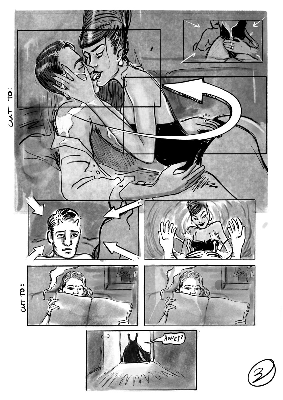 Radioactive Rita is a story I developed and storyboarded, centered around a female protagonist —Rita—who seduces men and transforms them into slugs. Equal parts absurd and satirical.