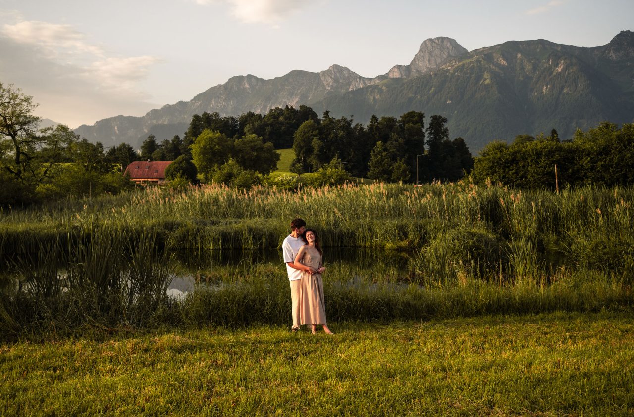 Zuerst wurde ein Moodboard erstellt um die Farben und Posen etwas zu planen, die gewollt waren. Nach längerem Suchen hatten wir die gewünschte natürliche Location gefunden – der Dittligsee ob Thun. Eine Rekognoszierung schaffte Klarheit über den Look der Fotos und des Hintergrunds.