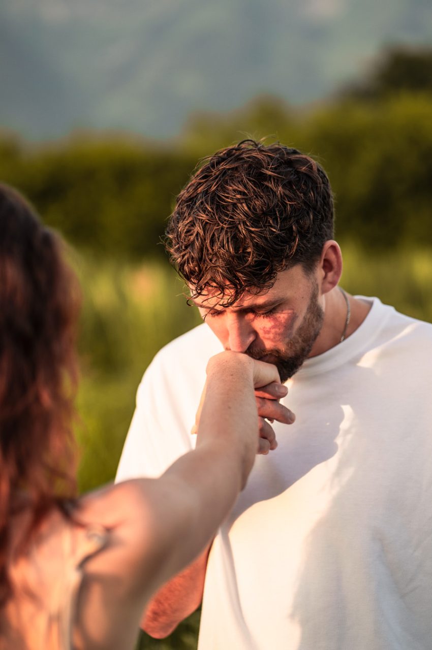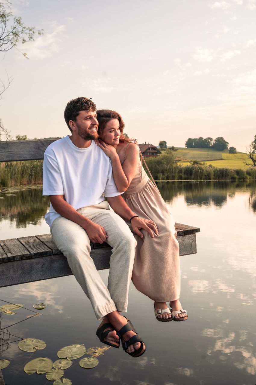 In den frühen Morgenstunden am Dittligsee nahe Thun habe ich ein Paar begleitet und versucht, Nähe so festzuhalten, wie sie sich anfühlt: leicht, warm und unaufgeregt – getragen vom ersten Licht des Tages und einer Bildsprache, die Raum für Emotionen lässt. Die Fotos wurden zwar zuerst nur als Fotomaterial an sich intentioniert, sie wurden aber spontan danach auch auf den Hochzeitseinladungen abgebildet.