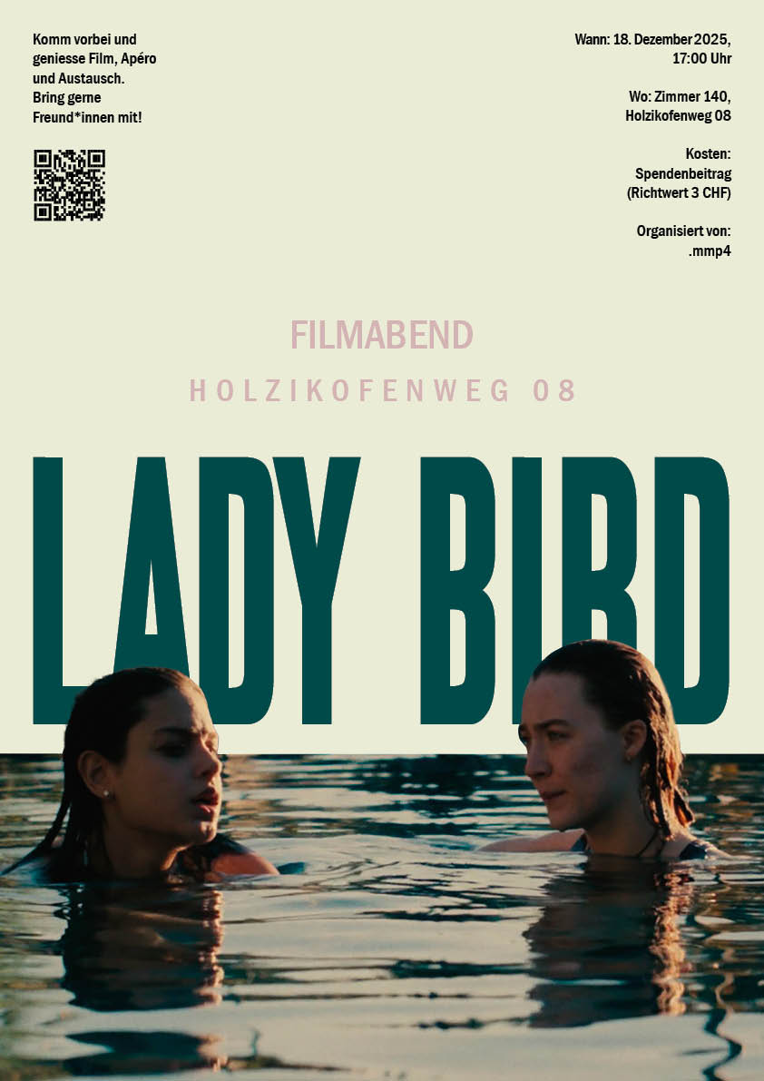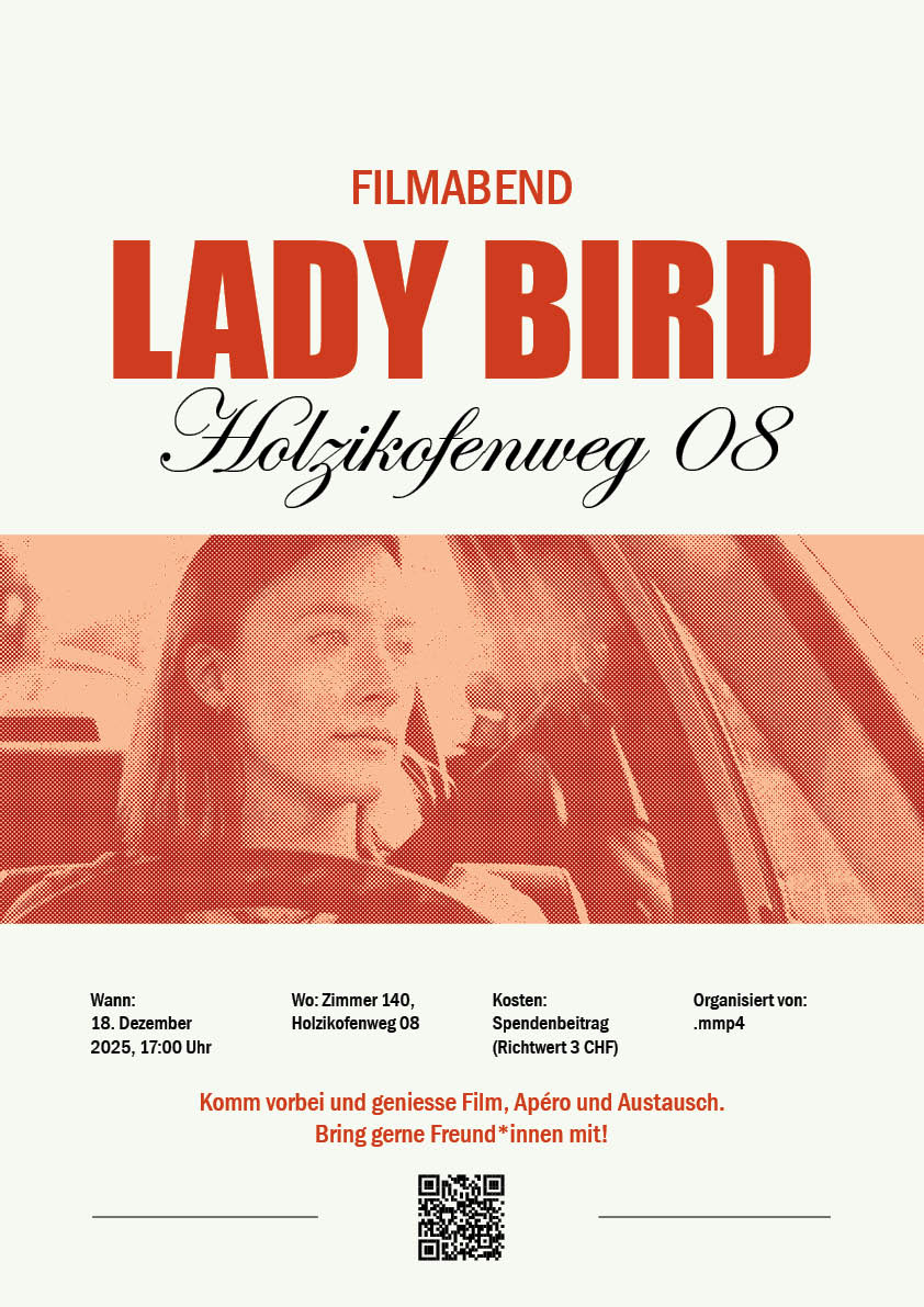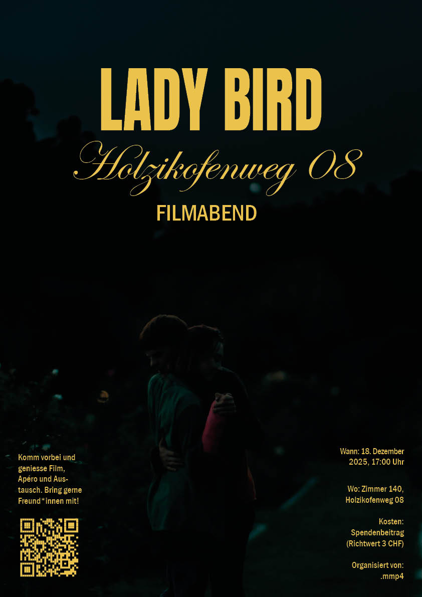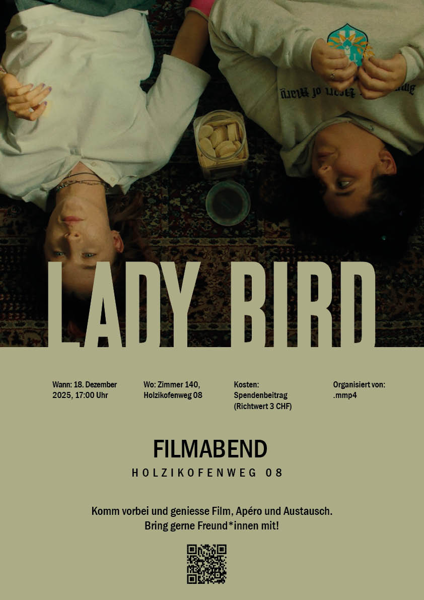 Immer wieder begegnen MMP Studierende dem Thema Film. Oft werden Filme erwähnt, die “man mal gesehen haben muss”. Wir möchten uns als Club verstehen, welcher sich zusammen über den Film weiterbildet. Wir möchten unser Wissen aus dem Studium anwenden können, mit anderen in einen Austausch kommen und vor allem, dass der Holzikofenweg Standort etwas lebendiger wird.