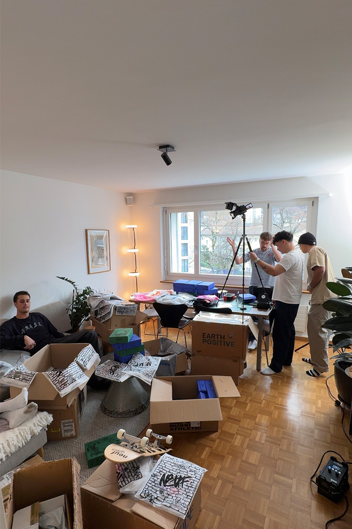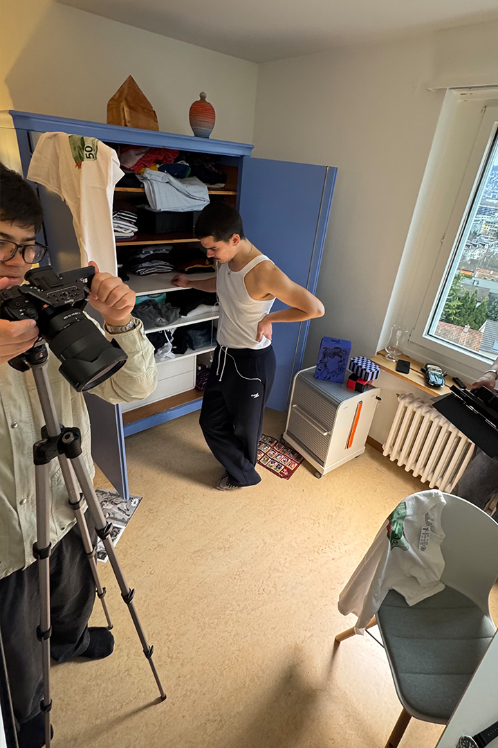 Der Arbeitsprozess begann bereits im Juli mit der Gestaltung der Kollektion. Dieser frühe Einstieg erwies sich rückblickend als sinnvoll, da konzeptionelle Entscheidungen zu Schnitt, Material und Design später direkt in die visuelle Umsetzung der Videodrehs einfliessen konnten. Gleichzeitig zeigte sich, dass ein langer Zeitraum auch Disziplin in der Planung erfordert, um Fokus und Stringenz über mehrere Monate hinweg aufrechtzuerhalten.