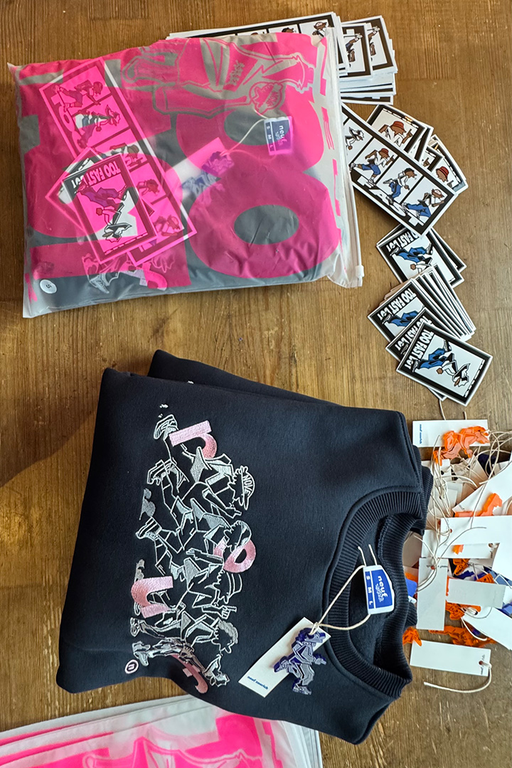 Die erste eigene Kollektion, bestehend aus Sweater und Jogger, wurde eigenständig konzipiert und produziert. Von der gestalterischen Entwicklung der Kleidungsstücke über die inhaltliche Ausarbeitung bis hin zur filmischen Umsetzung lag der gesamte Prozess in unserer Hand.