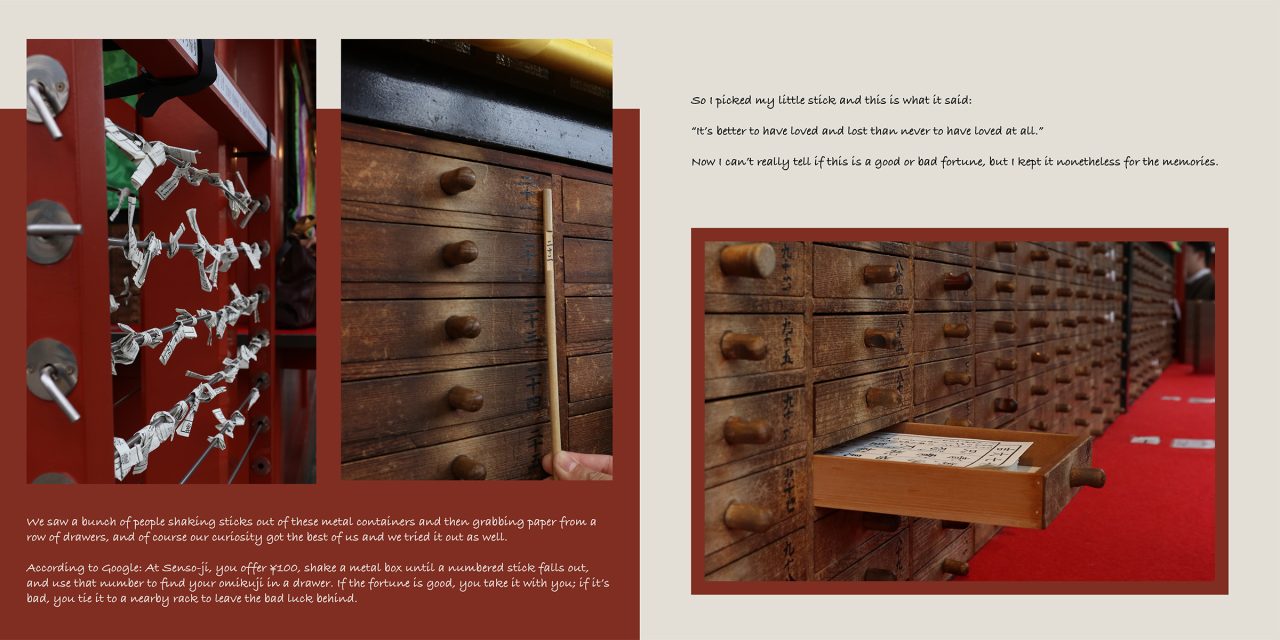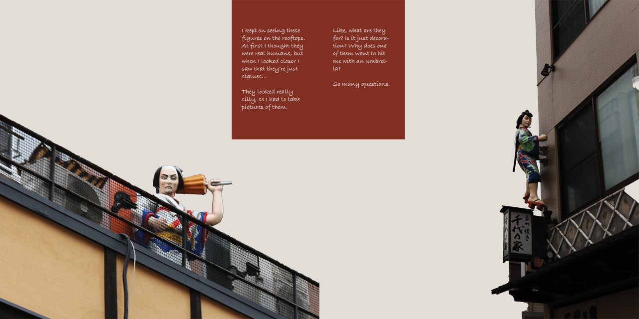 Die Idee, meine Tokyo-Reise als digitales Scrapbook statt als klassisches Fotobuch umzusetzen, hat gut funktioniert, um Nähe und Intimität herzustellen. Durch das  Kommentieren der Bilder entsteht ein sehr persönlicher Zugang, fast wie ein visuelles Tagebuch. Für mich selbst, aber auch für Aussenstehende wird dadurch klarer, wie sich diese Reise angefühlt hat und nicht nur, wie sie ausgesehen hat.