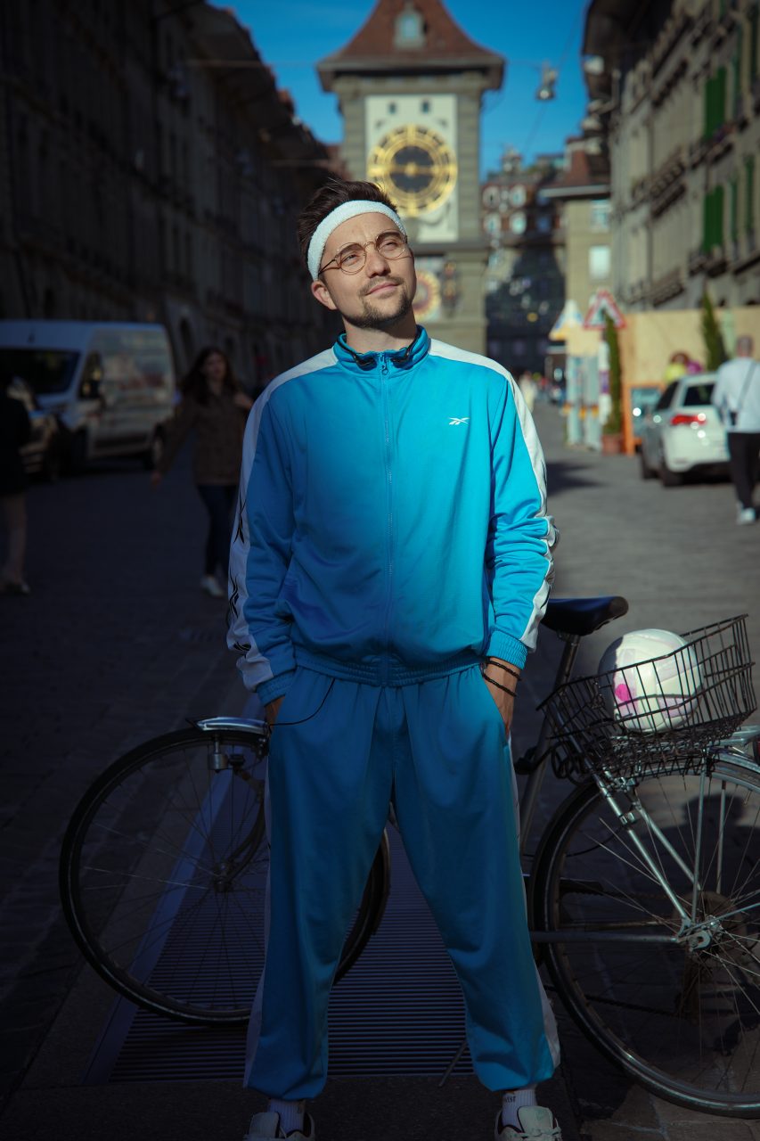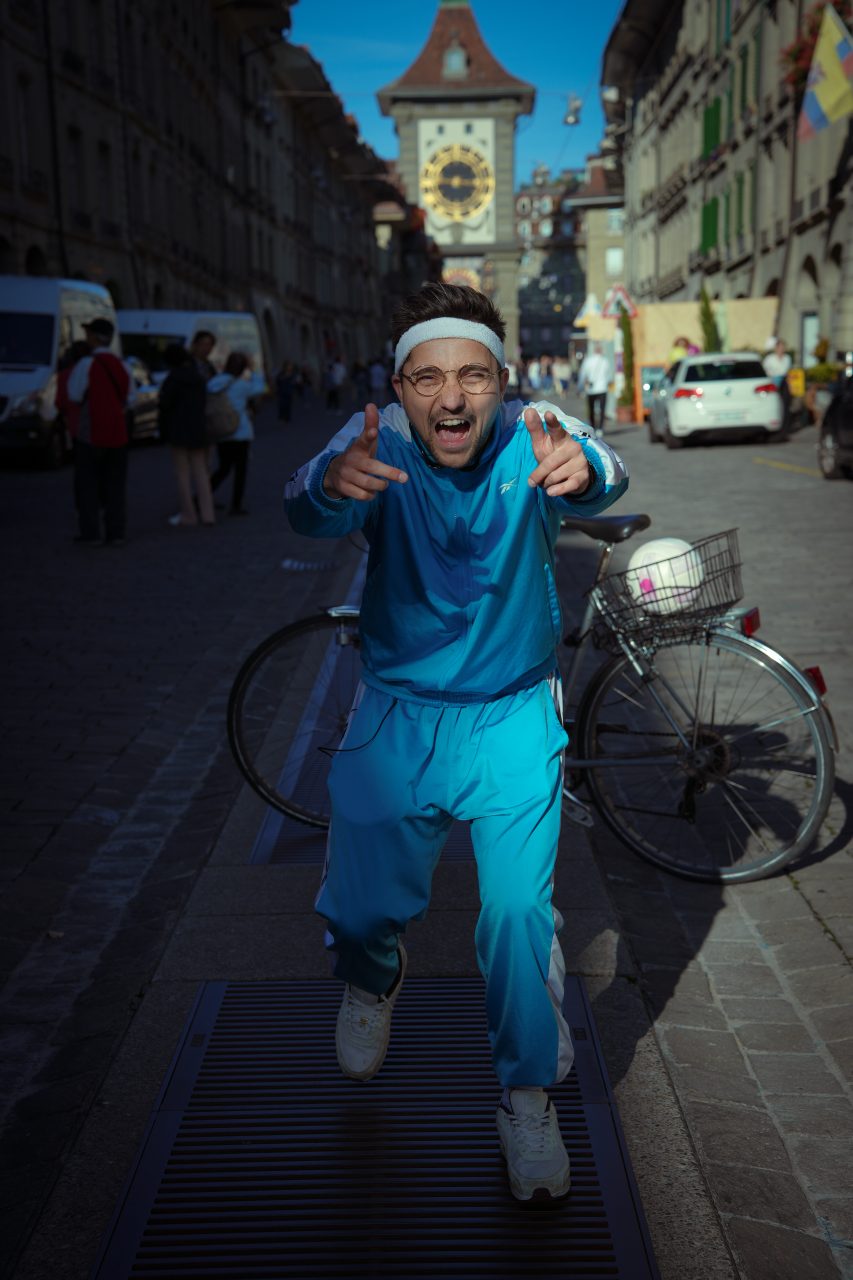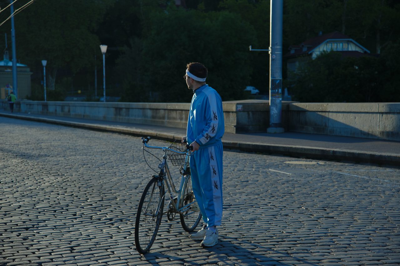 Das Konzept: Eine Mischung aus Spinning-Class-Studio und den Strassen von Bern. Zwischen Neonlichtern, Schweiss und Spass am Fahren haben wir versucht, die Energie des Songs visuell einzufangen – mit einem Augenzwinkern und viel Velo.