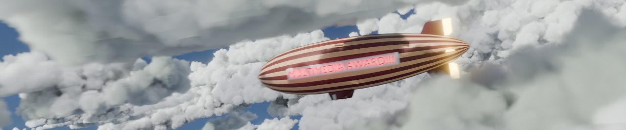 Zusätzlich produzierten wir ein Custom-Intro für die Show. Die Kamera fliegt dabei durch volumetrische Wolken, bis ein Zeppelin ins Bild schwebt, auf dem «Multimedia Awards» steht – ein cineastischer Einstieg, der die Zuschauer in die Rummelplatz-Welt hineinzieht.