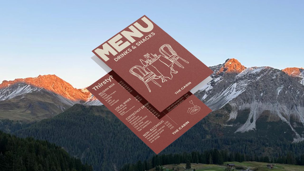 The design of The Cabin is deeply rooted in its surroundings. Rather than creating an abstract concept, I started from the environment of Chur itself. The color palette is inspired by the alpine nature around the city: warm earth tones, deep reds, muted greens and soft neutrals found in wood, leaves and stone. These colors help me create a sense of warmth and calm, both in the branding and in the overall visual experience.