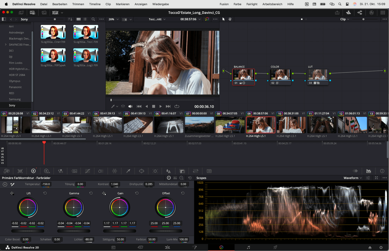 Der ganze Prozess war ziemlich spontan, da ich mich hauptsächlich ans Filmen gewöhnen und ausprobieren wollte, wie ich mit Licht, Bewegung und Situationen umgehen kann. Im Schnitt habe ich dann versucht, daraus eine kleine Geschichte zu basteln. Gefilmt habe ich in S-Log, geschnitten und vertont in Premiere, mit ein paar kleinen Animationen in After Effects. Das Colorgrading habe ich in DaVinci gemacht – das war dann auch der Teil, der mehr Zeit als geplant in Anspruch genommen hat. Spannend war für mich, verschiedene Tools zu kombinieren und einen Workflow aufzubauen, der für mich funktioniert. Am schwierigsten war tatsächlich, einen Schluss zu finden – ich hatte immer wieder neue Ideen oder Dinge, die ich noch ändern wollte.