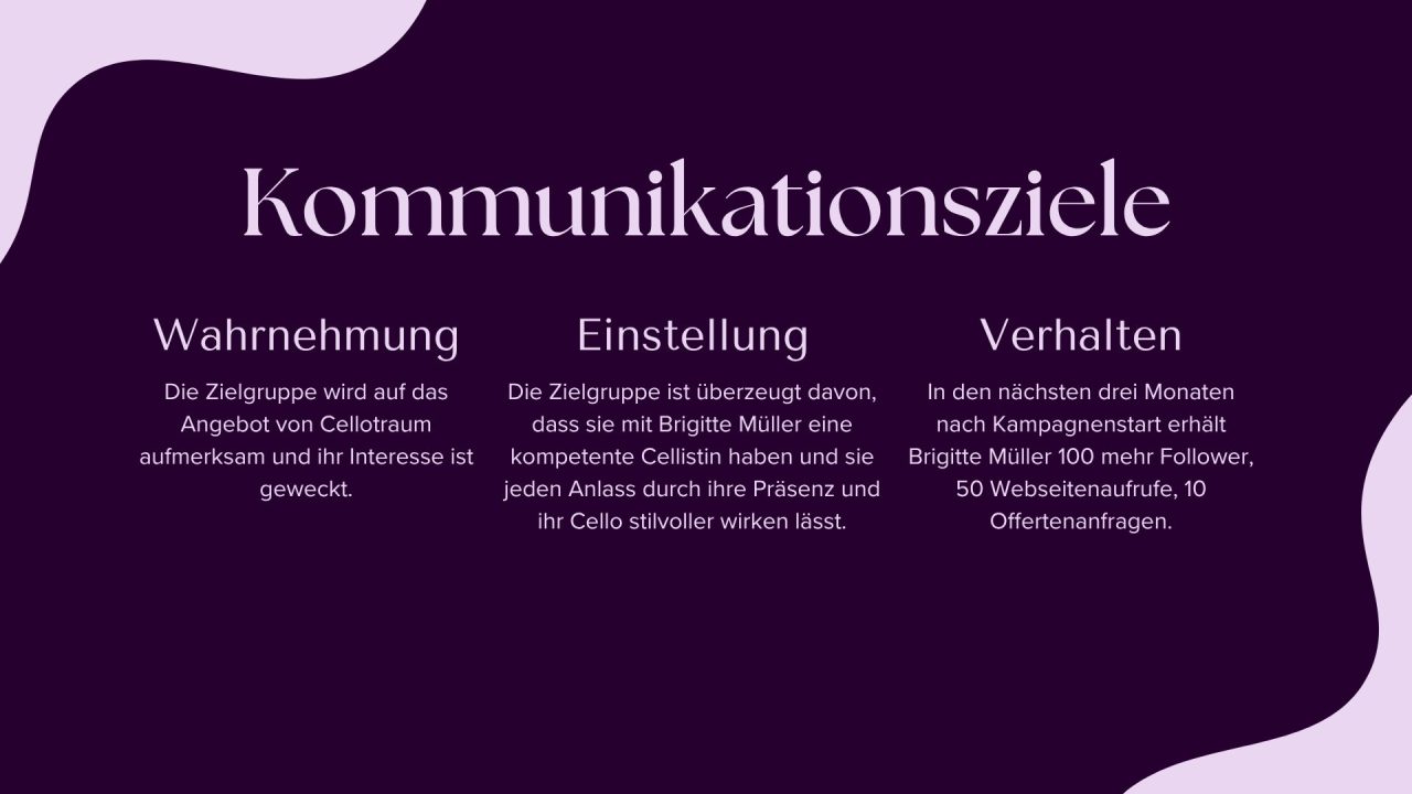 Kritisch betrachte ich, dass die Strategie noch stärker hätte herausarbeiten können, was die Cellistin konkret von anderen Musiker:innen unterscheidet. Der emotionale Ton ist zwar stimmig, aber für eine wirkungsvolle Kundengewinnung wären klarere Nutzenversprechen und Prioritäten hilfreich. Auch die Fülle an Massnahmen übersteigt in der Praxis vermutlich die verfügbaren Ressourcen.