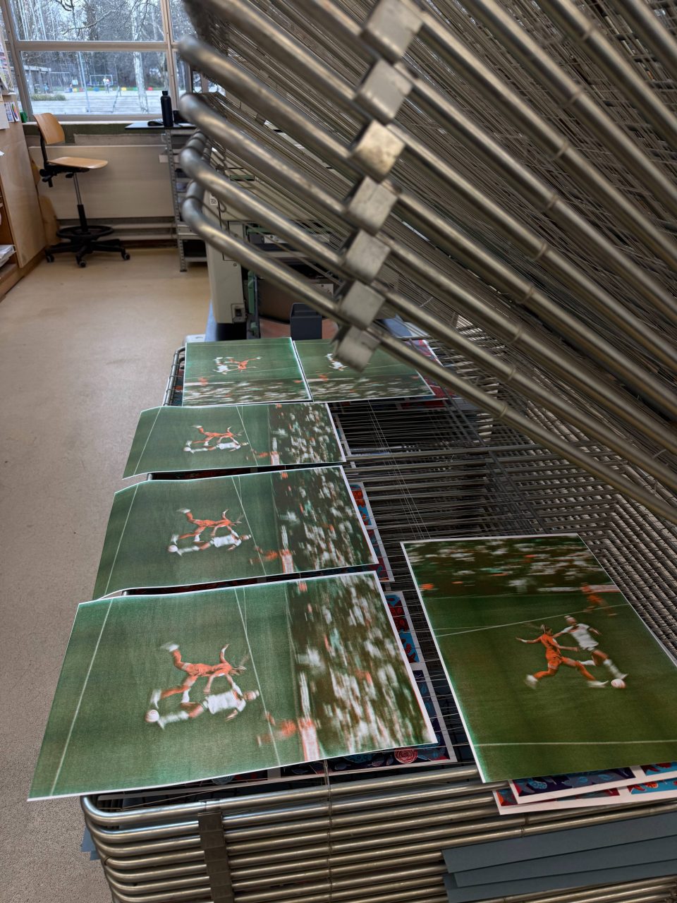 Das Reel zeigt den Entstehungsprozess eines der Plakate von der Bearbeitung des Bildes bis zum fertigen Druck. So wird sichtbar, wie Gestaltung, Farbauswahl und Produktionsverfahren zusammenwirken, um die Dynamik der Sportfotografie in eine neue grafische Form zu übersetzen.