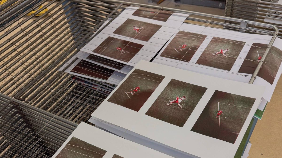 Das Reel zeigt den Entstehungsprozess eines der Plakate von der Bearbeitung des Bildes bis zum fertigen Druck. So wird sichtbar, wie Gestaltung, Farbauswahl und Produktionsverfahren zusammenwirken, um die Dynamik der Sportfotografie in eine neue grafische Form zu übersetzen.
