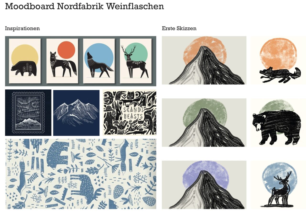 Nach einer ausführlichen Recherche stellte ich für die Agentur ein Moodboard zusammen und präsentierte es. Dies führte zu einer interessanten Diskussion, aus der weitere Ideen hervorgingen, die ich in das Projekt einfliessen liess.