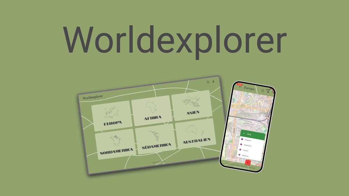 Mit Worldexplorer habe ich eine App entwickelt, bei der es nicht darum geht, möglichst schnell ans Ziel zu kommen, sondern darum, die Welt Schritt für Schritt zu entdecken. Ausgangspunkt ist eine Weltkarte, die nach Kontinenten aufgeteilt ist. Jeder Kontinent besteht aus vielen einzelnen Kacheln, die man erkunden kann.