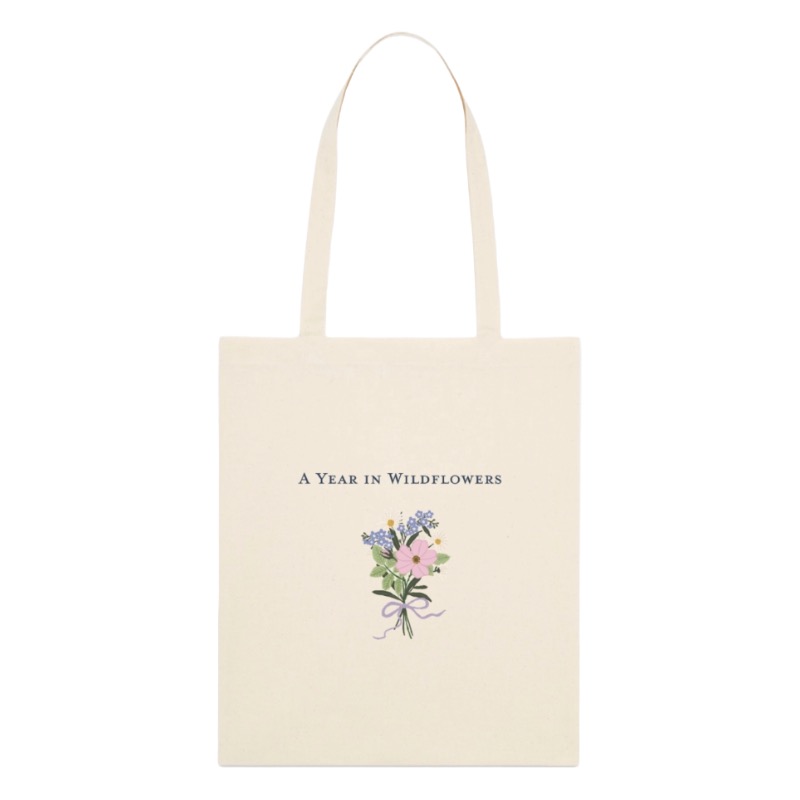 Das Design des Beutels zeigt auf der Vorderseite zwölf illustrierte Wildblumen mit ihren botanischen Namen – jede davon steht stellvertretend für einen Monat im Jahr. Die Rückseite ziert ein kleiner Wildblumenstrauss mit dem Titel „A Year in Wildflowers“.